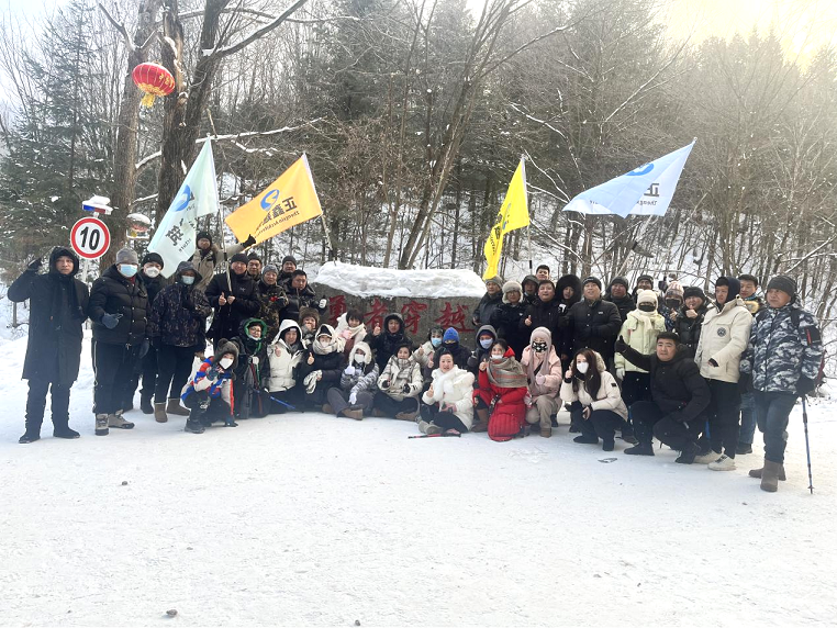 2024年1月3日,正鑫全体员工从雪谷穿越羊草山徒步到达雪乡。
